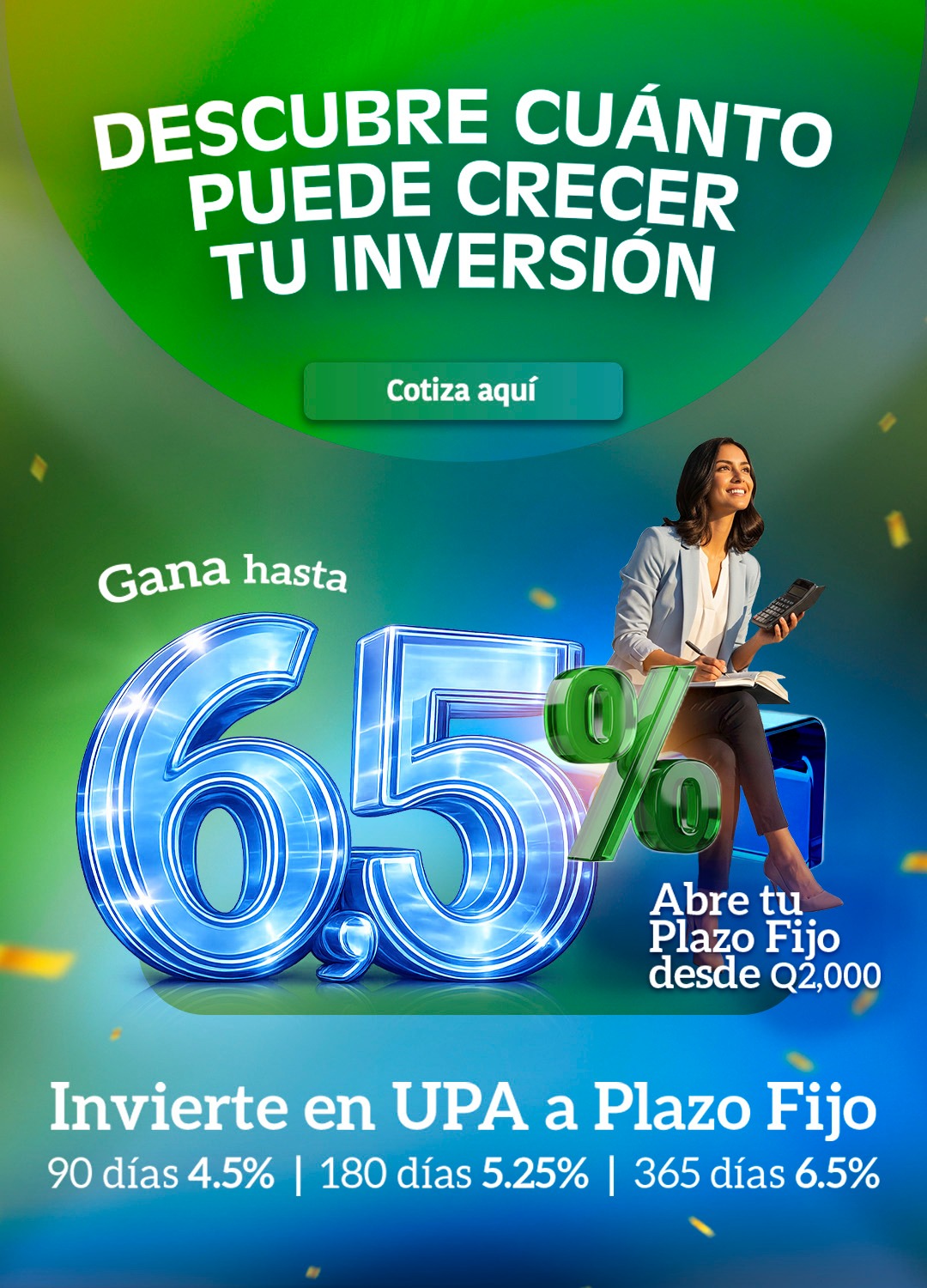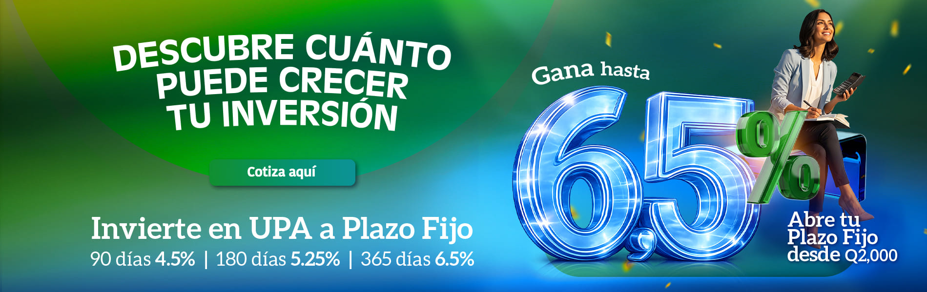 Presta hasta Q300,000 con el 1.25% de interés mensual.